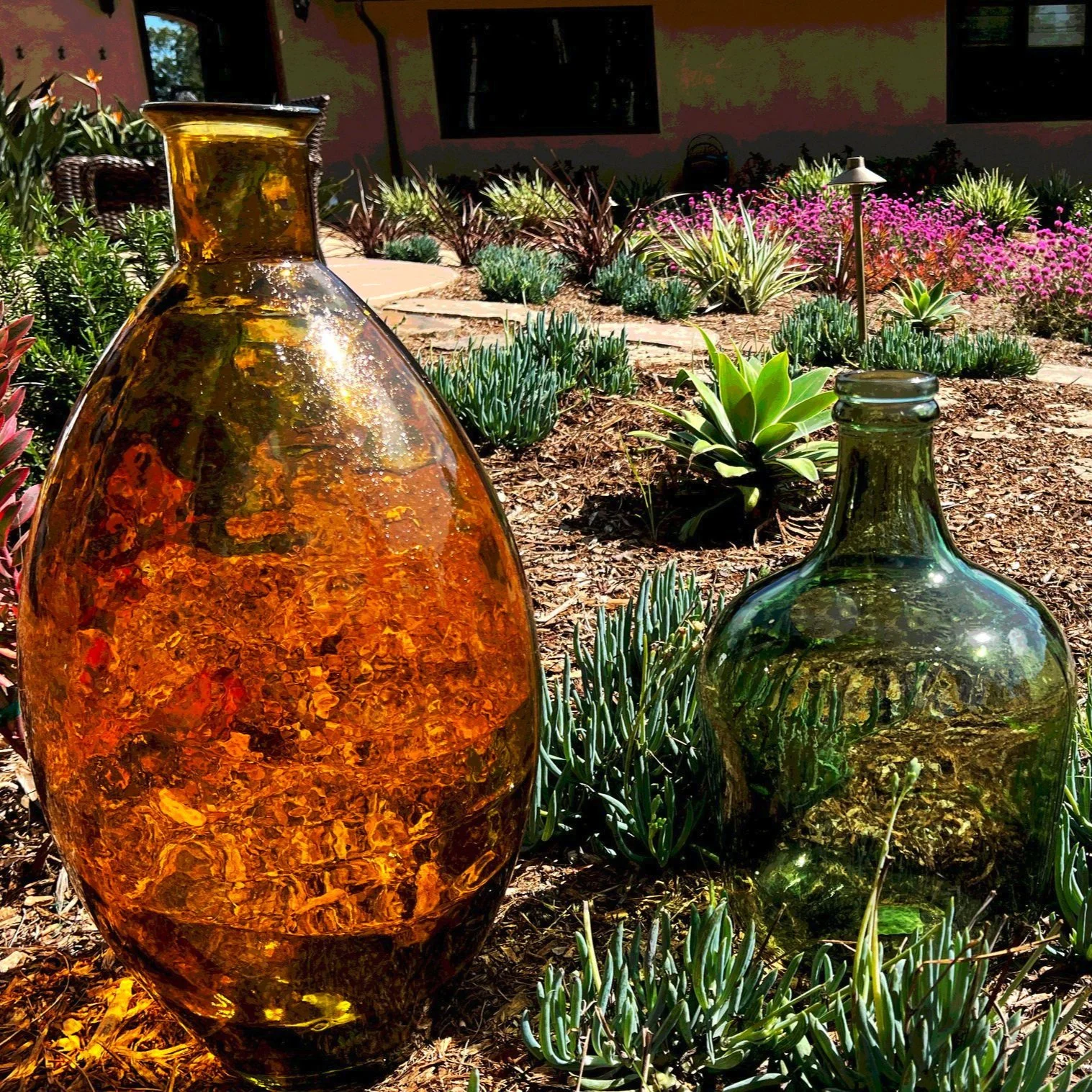 This project was for a client in Solana Beach who wanted an avant-garde / Dr. Seuss / art showcase / succulent painting type of landscape design for her North facing fenced in front yard. She hired me for a same-day sketch service which was extended to a few weeks. She was very open to creative ideas (my favorite type of client) and what came through was this blooming butterfly form with one of it’s wings as a succulent painting including an arc of colored glass.